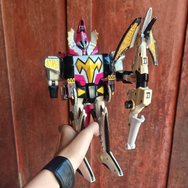 Koleksi pribadi original bandai langka Harga pasaran tinggi, bekas pajang lama, lecet, terawat, gimik lancar gattai/ungattai, elect off, slot batre masih oke min: jari kanan topgaler, 1 sirip stega, bekas lem Masih ada, silakan order