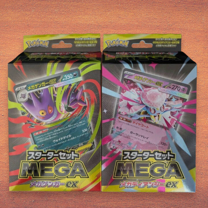 Isi tiap deck: 1 ready-to-play 60-card deck, featuring either Mega Gengar ex or Mega Diancie ex. 1 set of damage counters. 1 large metallic coin. 1 deck box. 1 double-sided playmat. 1 strategy sheet. 1 code card for Pokémon TCG Live. Additional details: The Mega Gengar ex deck includes an exclusive illustration rare Haunter card. The Mega Diancie ex deck includes an exclusive illustration rare Meloetta ca...